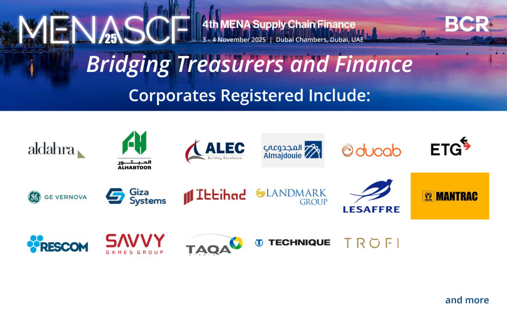SCF MENA 07-10-2025Bridging treasurers and finance – where corporates and banks shape the future of tradeLarge numbers of corporates registered at the 4th Annual MENA Supply Chain Finance 2025 which is an important now an event for treasurers, corporates, and financial leaders across the region.…Sign in or Upgrade to Continue ReadingThis news article is over 10 days old. Subscribe today to access all articles with an annual subscription. Become a member Learn moreAlready a subscriber? Log in here #MENA#supply chain finance#treasurers#working capital